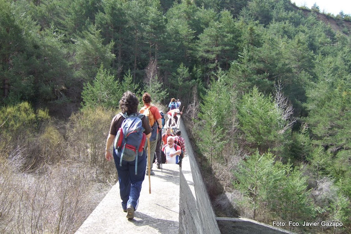 Desde la plaza salimos de Barbenuta por la iglesia (cartel anunciador: Olivan) y, seguimos por la carretera unos 200 metros, para salirnos por la izquierda (mojones) siguiendo la senda hacia el barranco D´os Lucas, que atravesamos utilizando uno de los diques de contención como pasarela (le añade un plus de aventura a la ruta). Vamos subiendo y, en un claro del camino (98) podemos divisar el nacimiento de las Stas, de Orós (figura geológica de conglomerado) (12.30 h).